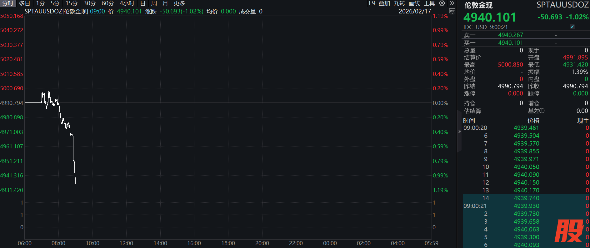 现货金银持续走低,现货黄金跌破4950美元现货金银持续走低,现货黄金跌破4950美元