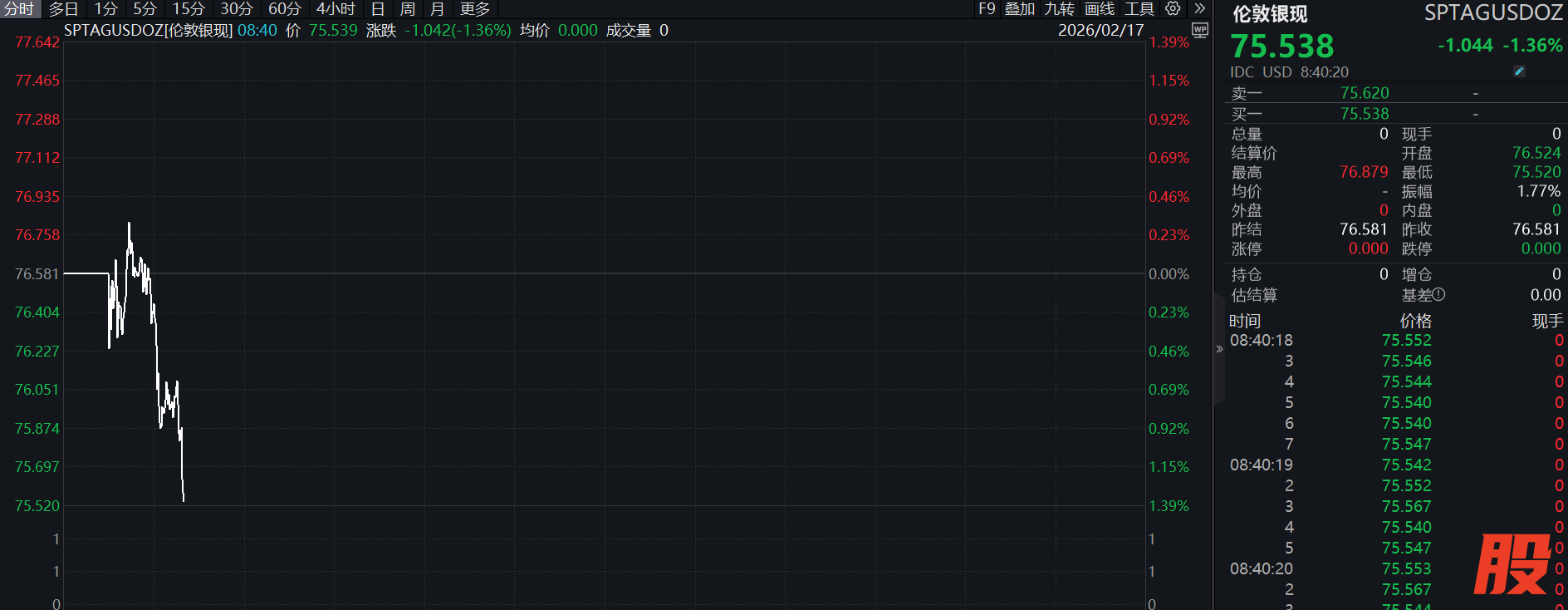 现货白银日内跌幅达1%,现报74.86美元/盎司;现货黄金跌0.62%,现报4679.28美元/盎司。