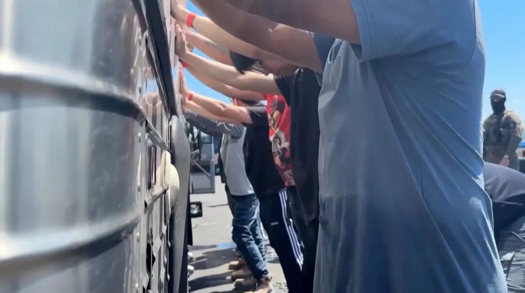 看视频,一众韩国人,被要求趴在墙上,美国执法人员对他们上镣铐,有手铐,还有脚铐,腰上还串上一根铁链,然后被押走……